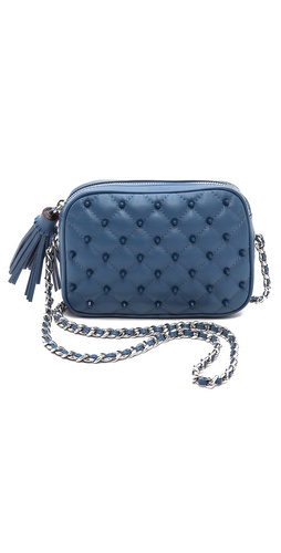 FREE SHIPPING at shopbop.com. Tonal cone studs on quilted leather bring luxe edge to a petite Rebecca Minkoff bag. The zip top opens to a lined interior with 1 pocket, and interwoven leather accents the polished chain strap. Silver-tone hardware. Dust bag included. Leather: Cowhide. Weight: 15oz / 0.42kg. Imported, China. MEASUREMENTS Height: 5.5in / 14cm Length: 8in / 20.5cm Depth: 1.75in / 4.5cm Strap drop: 20in / 51cm - Denim Read more