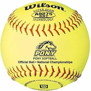 Wilson A9275BSST 11 Inch Leather .47 Core Pony League Softball (Sold in Dozens) : 11 yellow leathercoverSuper SeamTechnologyCOR .47Poly centerPonyLeague playQuantity: Sold in Dozens Only Read more